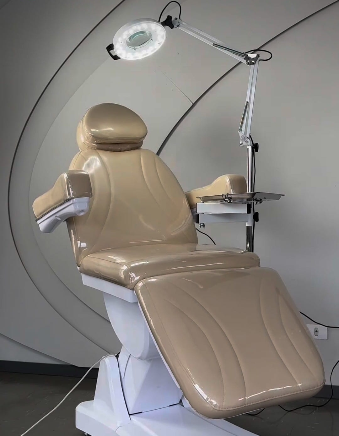 KIT MACA POLTRONA 100% ELÉTRICA LUXO 3 MOTORES + PLASTIFICAÇÃO + LOGO PERSONALIZADO DA SUA CLINICA + MOCHO NA COR DA SUA MACA ELÉTRICA + LUPA EM LED DE ALUMINIO ARTICULADA + RODINHAS E FREIOS.