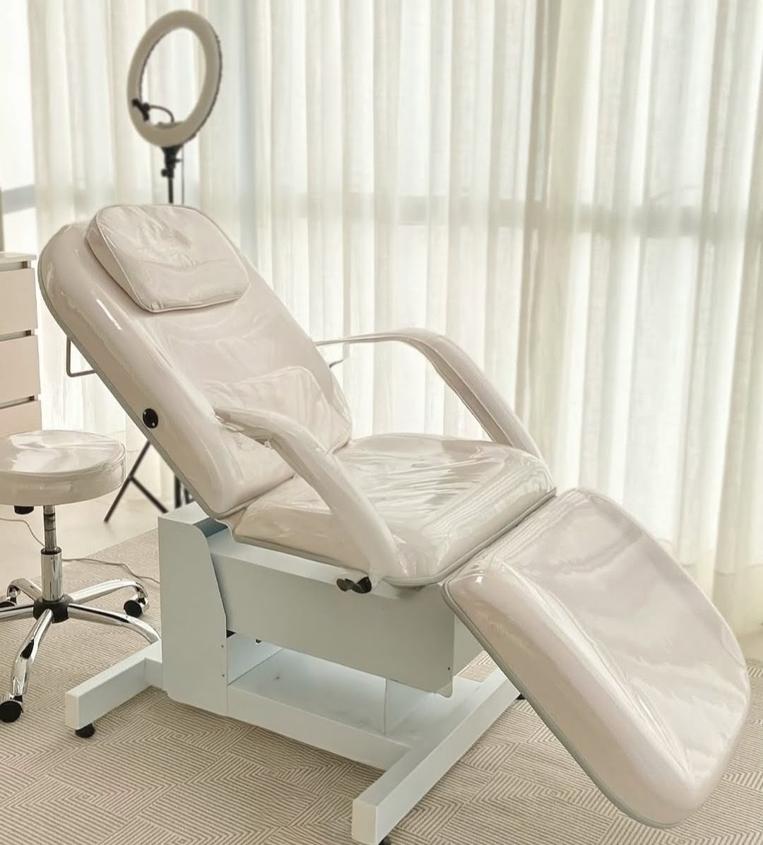 Esta é fabricada com 3 motores integrados que facilitam e trazem ergonomia ao profissional permitindo ajustes individuais dos pés, do encosto e ajuste de altura com o paciente já posicionado sobre a mesma, sendo assim perfeita para atendimentos na área da beleza, médica, reabilitação e estúdios de tatuagem.